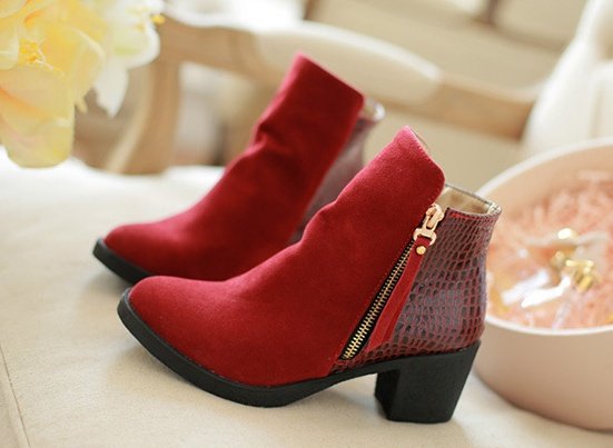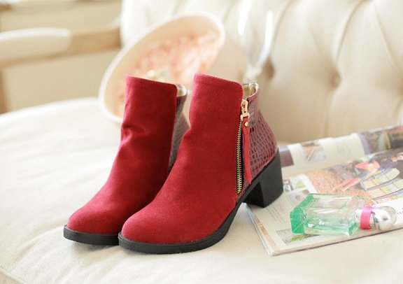 Rough leather low boots high heel women's boots side zip large size women's shoes quantity